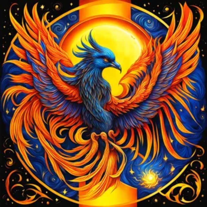 Sun felt the shadow of the moon cross his celestial form, his light flared, searing the wings of the phoenix. From the corner of his eyes, he saw the phoenix start to fall, feathers burning. He had gotten too close to the sun.
