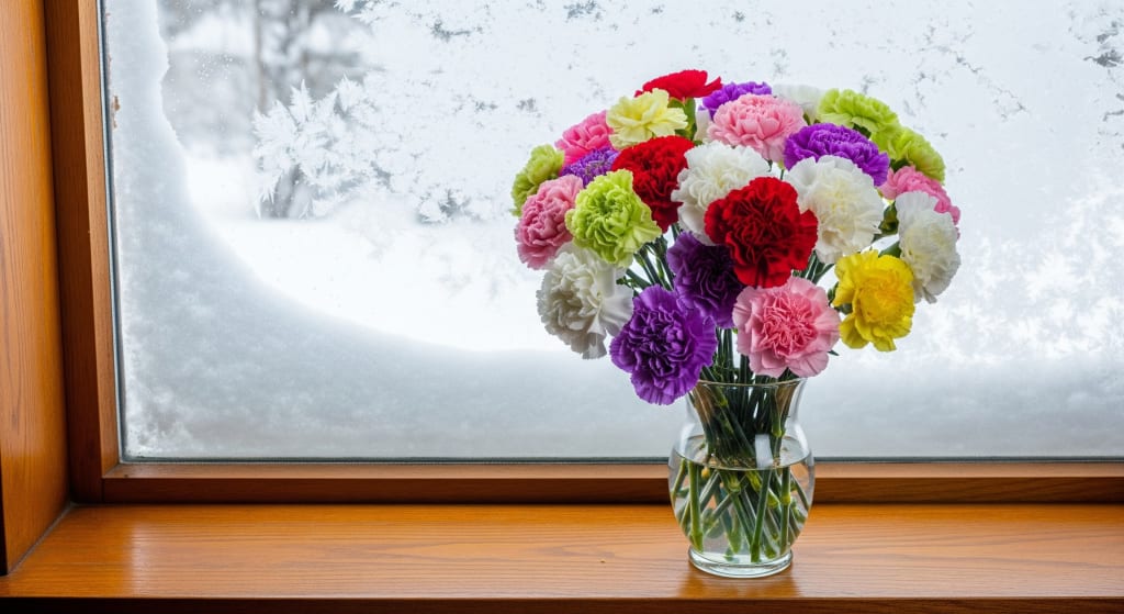 • This is beautiful and I love the idea of the colourful carnations contrasting with the snow. A poetic and colourful poem. 💐
