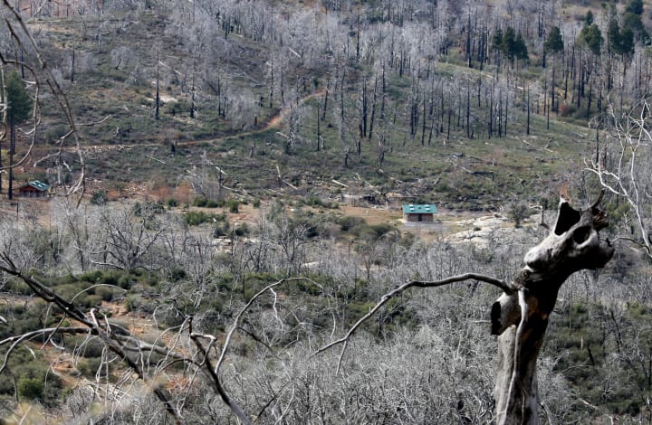 Note: The Cedar Fire of San Diego County, California, burned for two weeks in autumn 2003 and consumed a total of 280,278 acres. Imagine the scale of devastation!