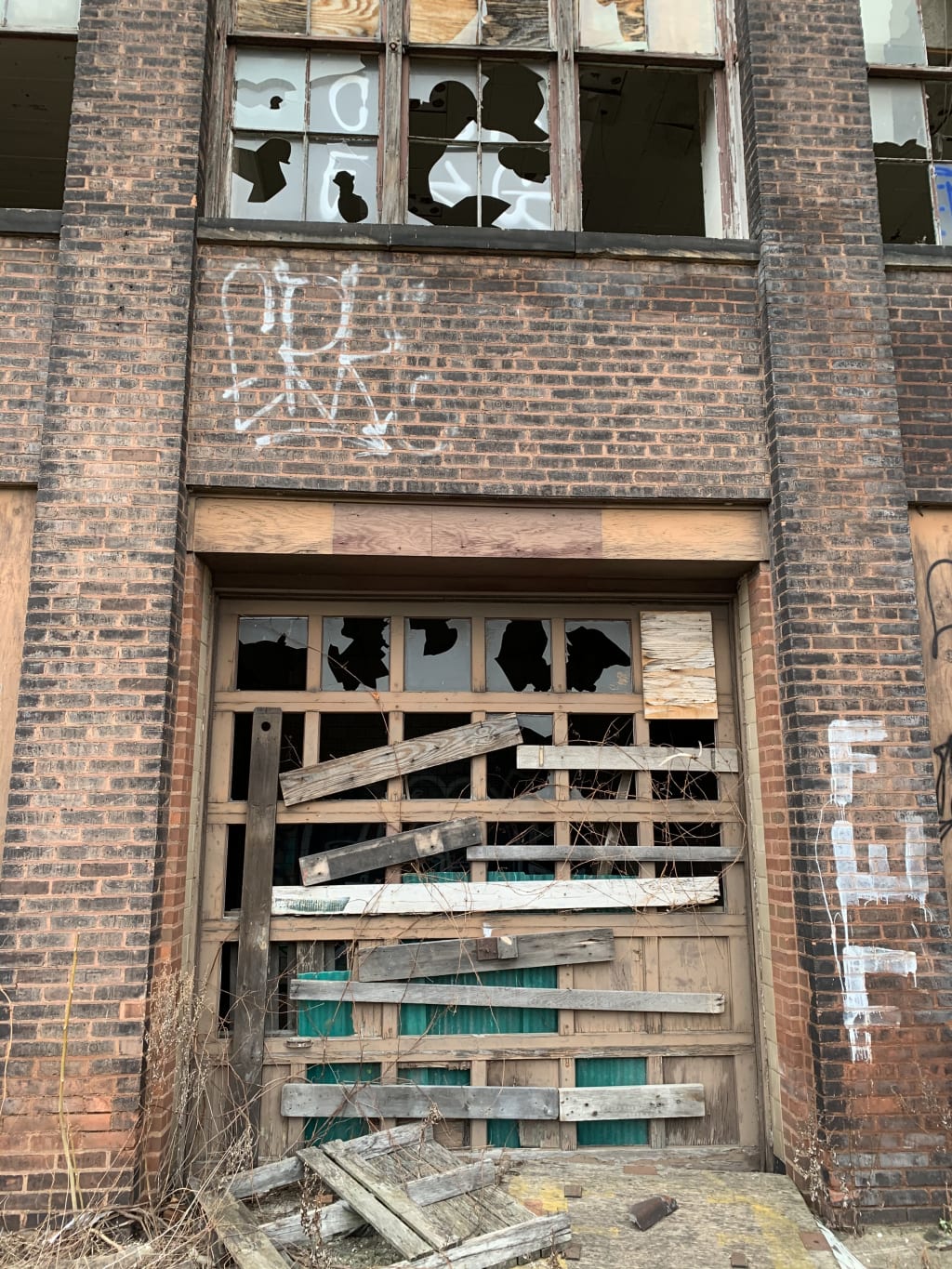 Abandoned buildings, burned out house and struggle