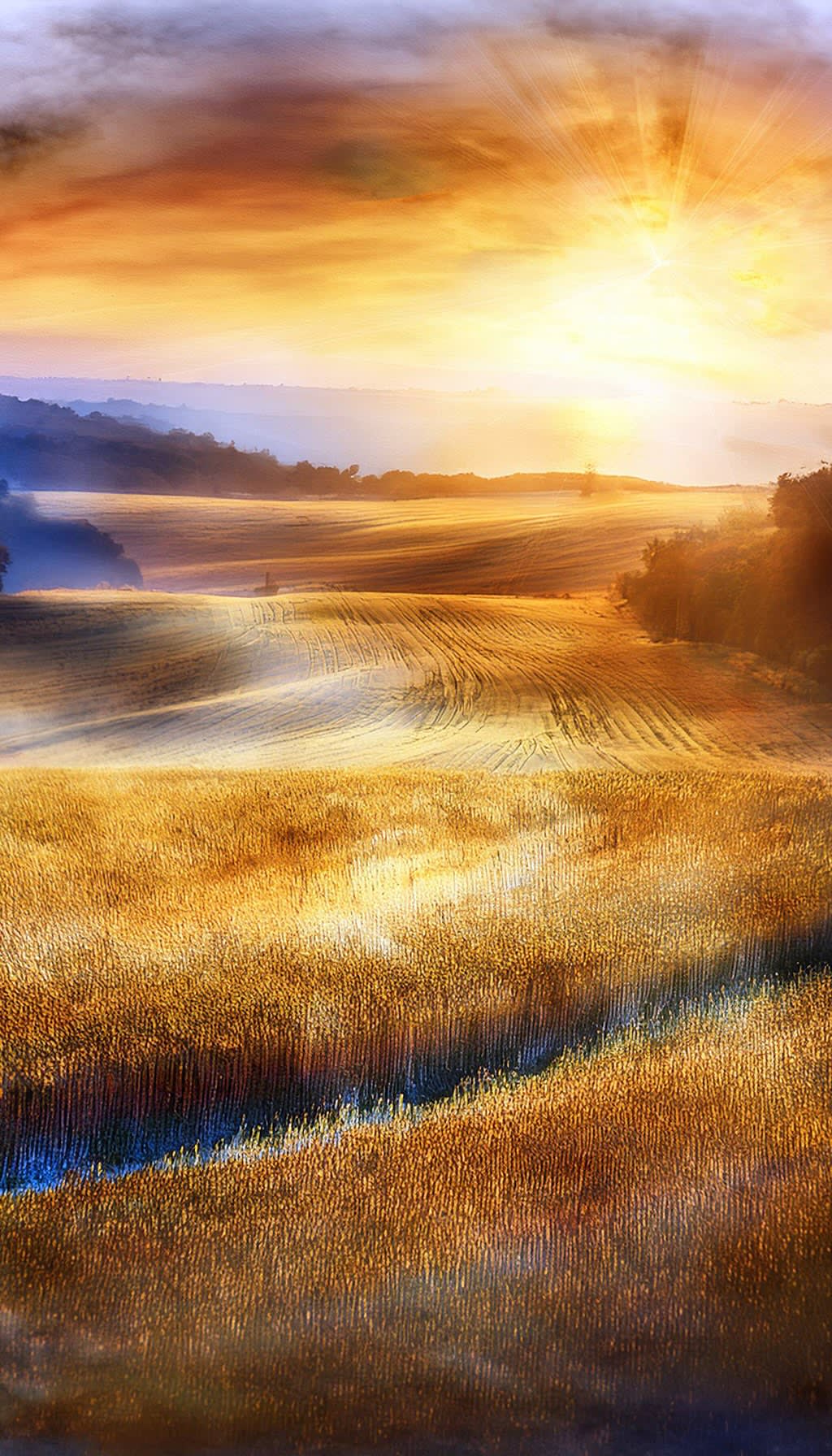 The dawn spills gold across the fields’ embrace,