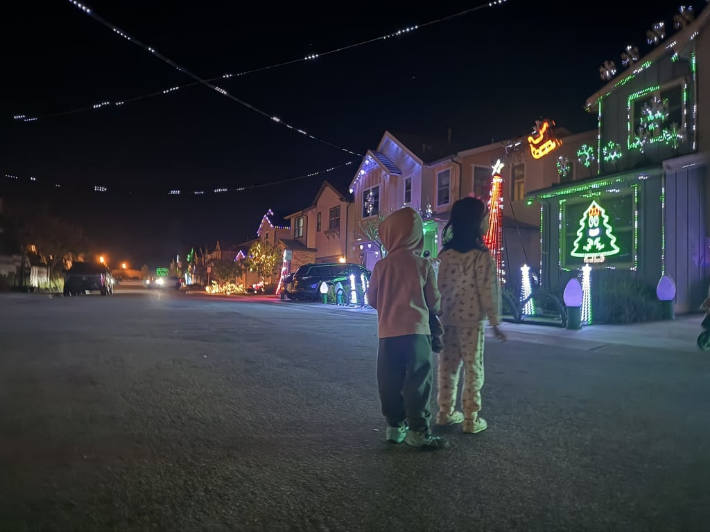 Christmas lights–watching walk.