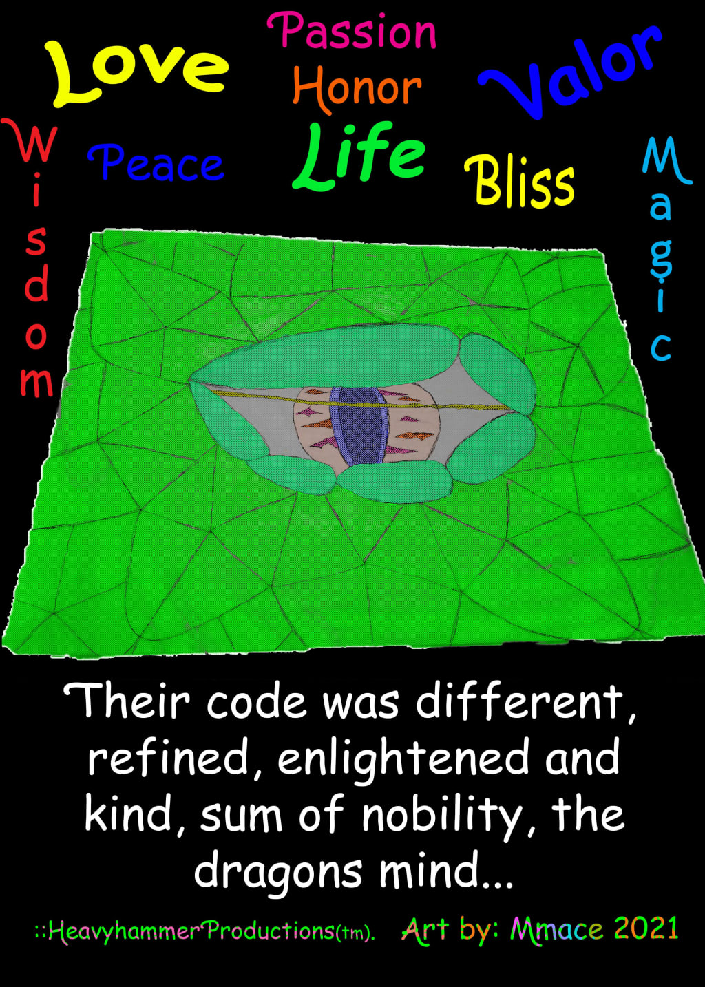 The dragon was mighty and valorous, Bluebird was his name and he was also handsome and true, the deepest blue color when he was inclined to take that hue. Quite resplendent the dragons form, but of his heart could be said ever the more. Bright the hues he was wrapped in magic, and from his heart flowed love more than you could ever imagine. Shades of Arcanum, fabric of his soul, the dragon was as wise as he was old. Bluebird kept a watchful eye with his magic powers, ever amused by the wry wizards heart and banter. But what really lit Bluebirds fire, were the dreams the mage had, with his desire to inspire. And for this the dragon was keen, and watched over Mmace unseen. But ever was it becoming harder, to stay the silent observing watcher…