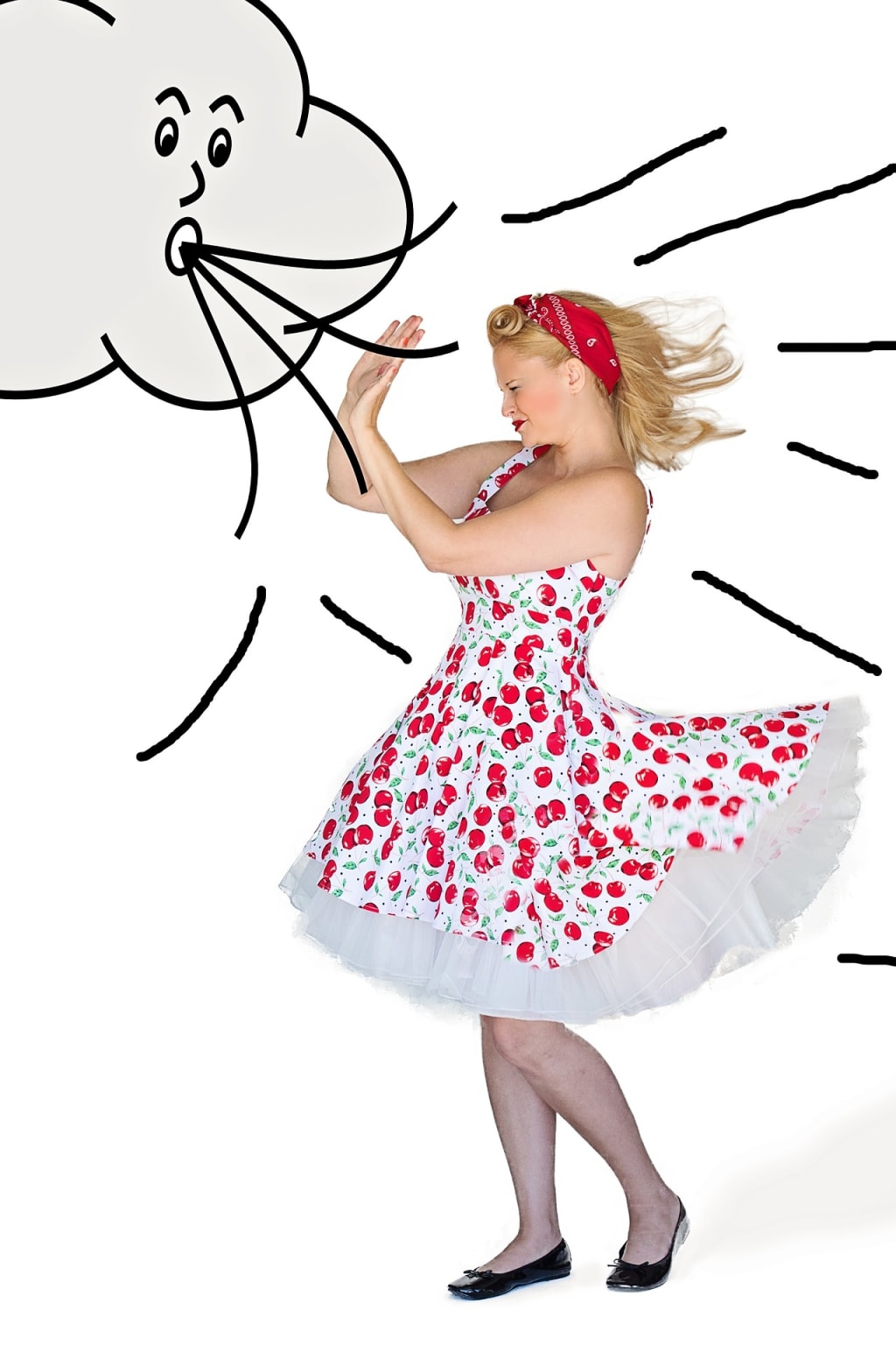 Blown a mess by windy air
