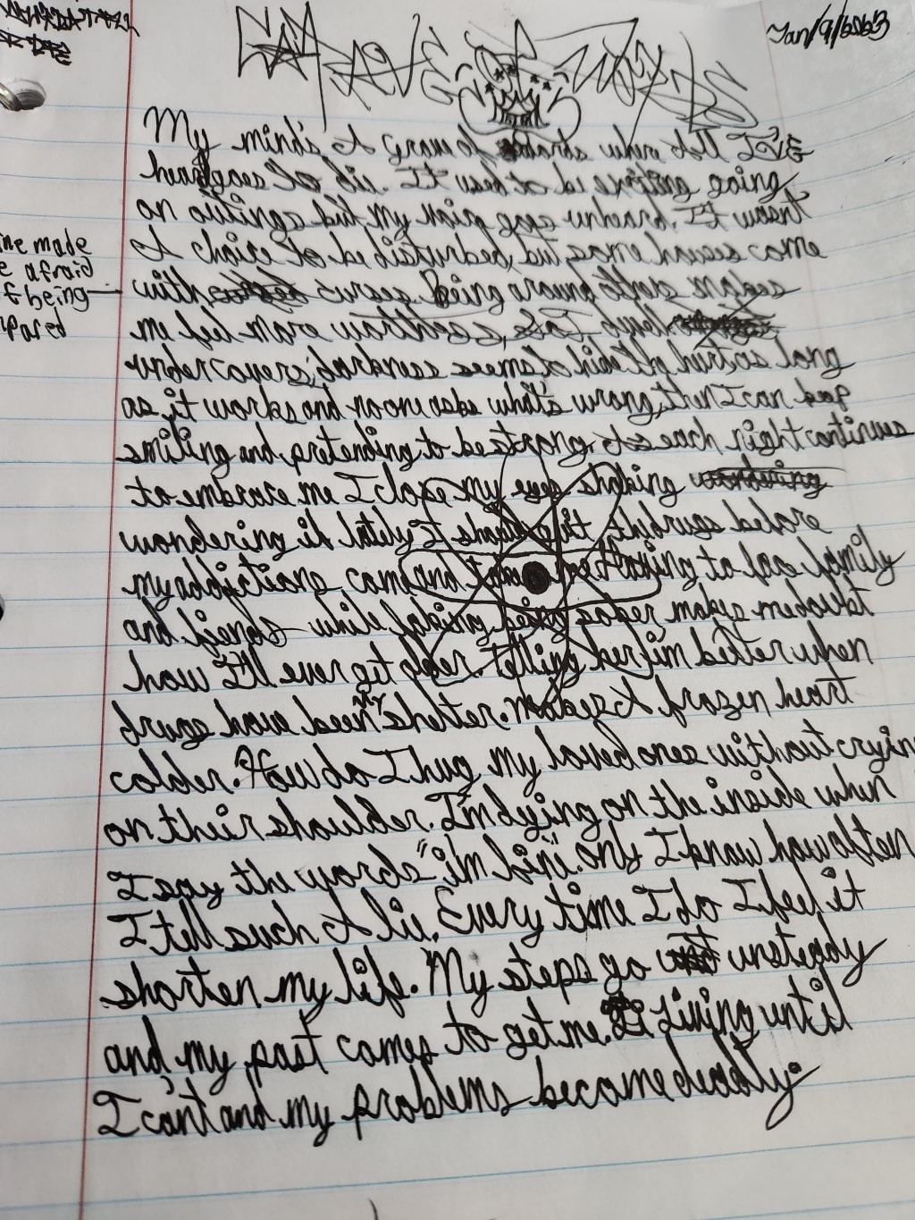 Telling her I'm better, while drugs have been my shelter, seems to make a frozen heart colder.