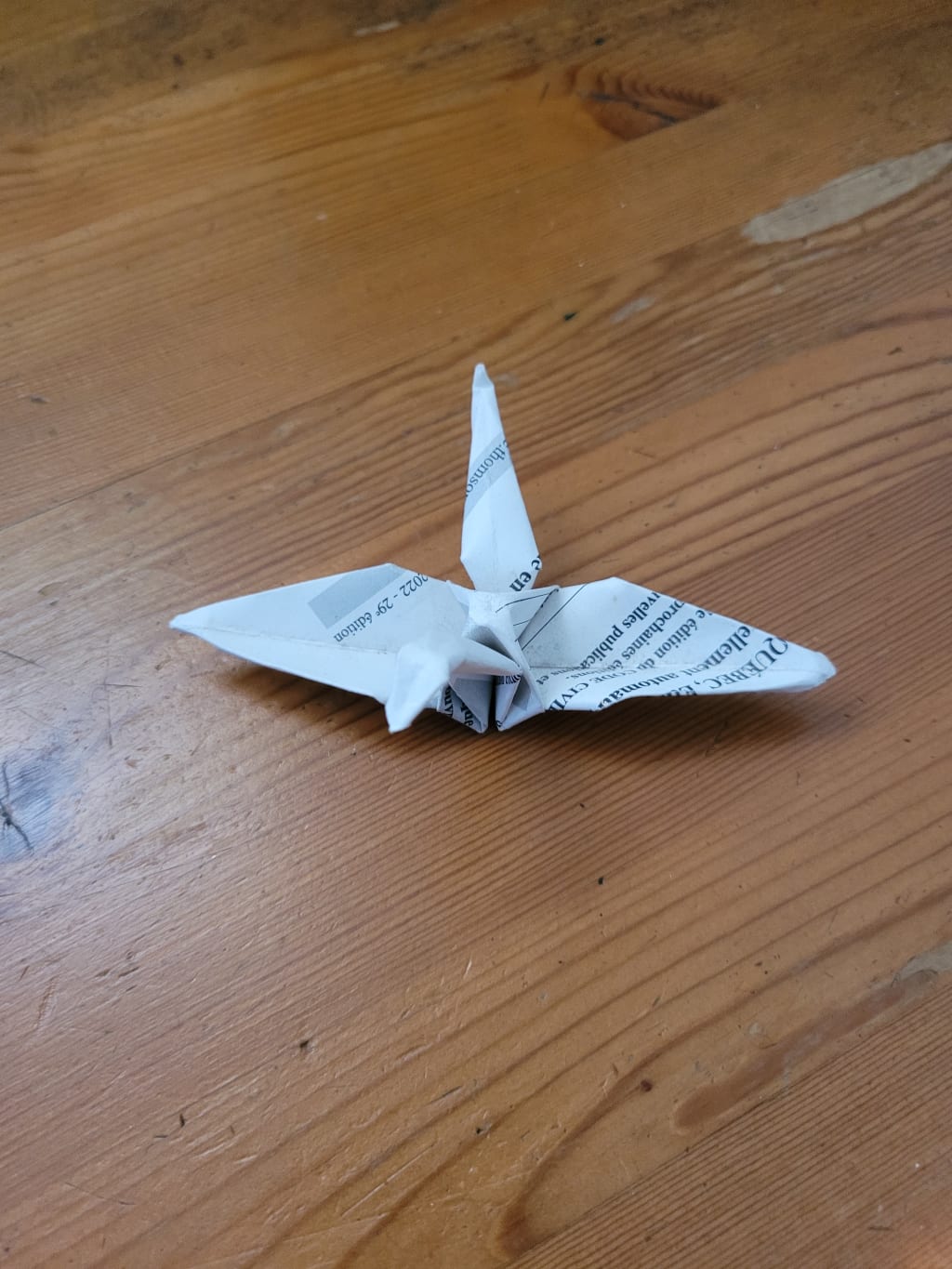 I think there should be a challenge that if you have a paper origami friend, write a haiku about it!