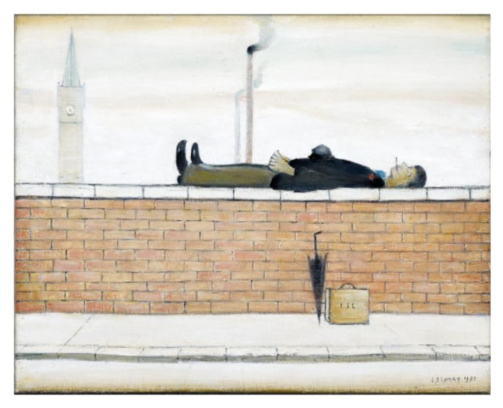I saw a man lie on a wall,