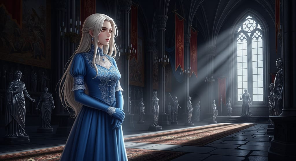 Alone, she walks the halls