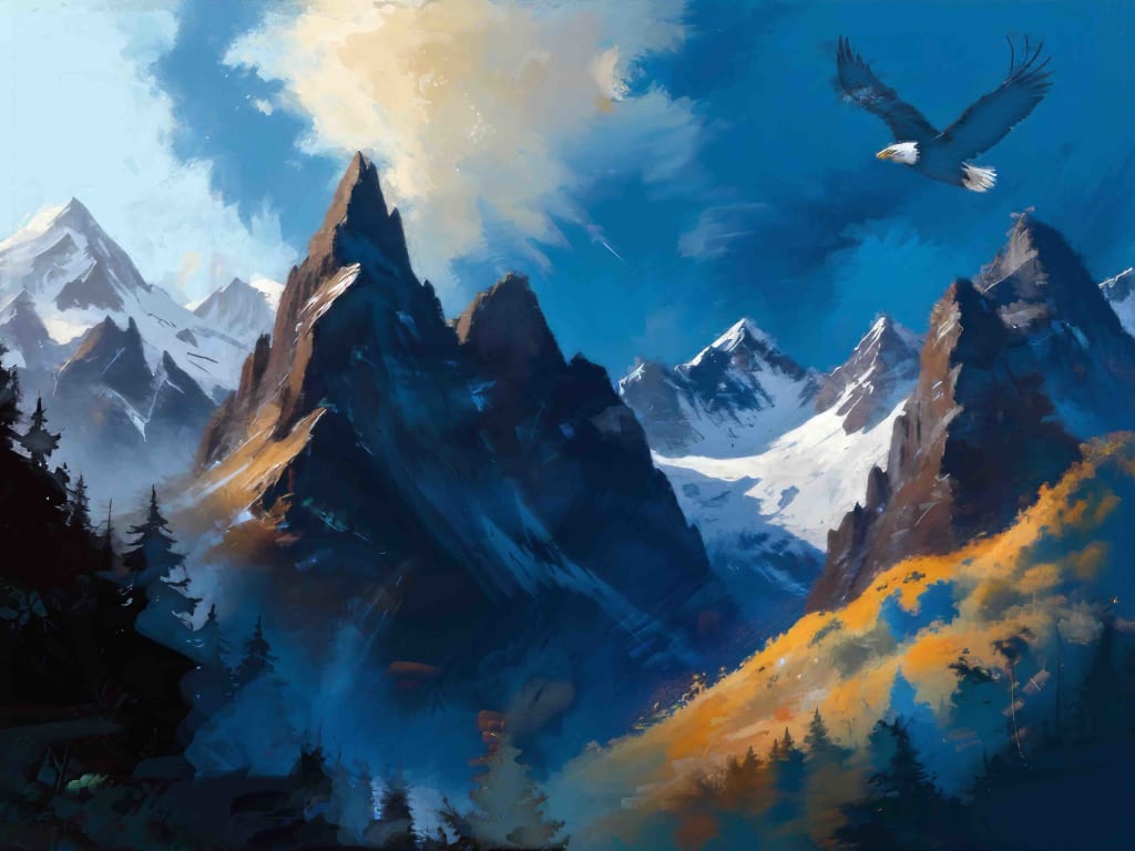 A Tanka that captures the majestic beauty of the Rocky Mountains, where the power of nature resonates through the air, bringing a sense of upliftment and connection to the natural world.
