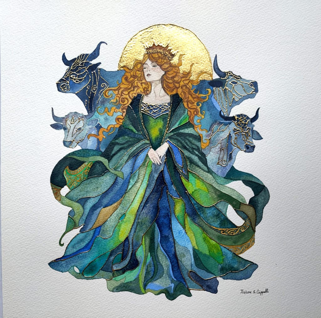 This is my fourth piece inspired by Justine G. Cappelli's gorgeous artwork.