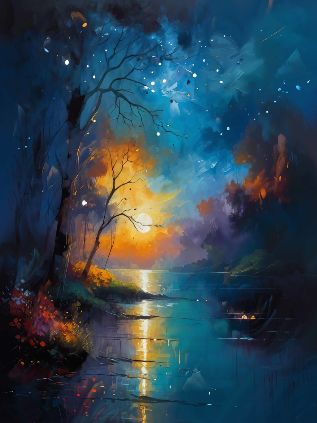 Where shadows dance, and starry secrets come.