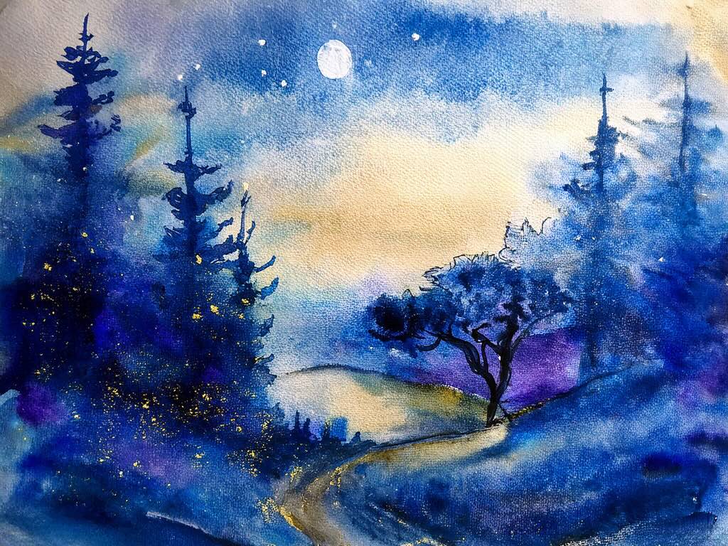 Postscript: This poem explores the serene and magical transition from twilight to night, capturing the deep, moving, and surreal beauty of the moonlit world.