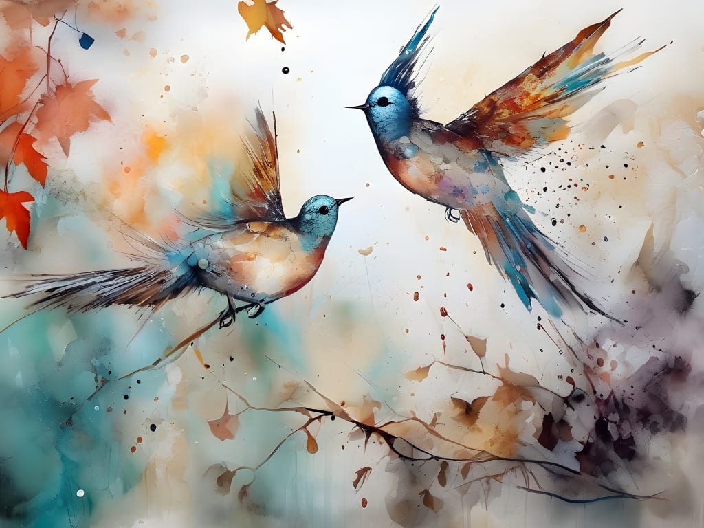 Leaves pirouette, birds converse,