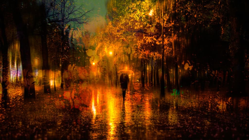 Exhausted leaves and the curtain of night