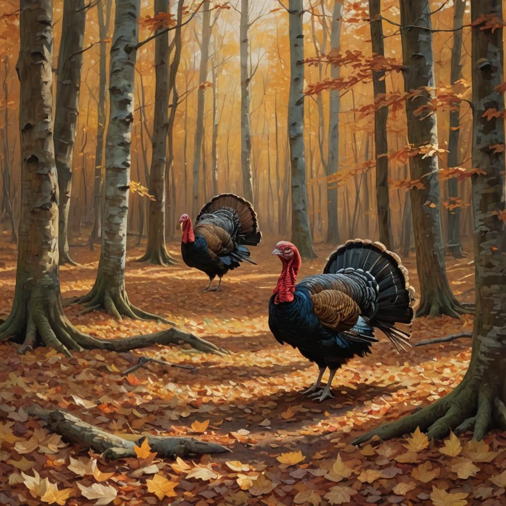 Turkeys, in Autumn's golden light,