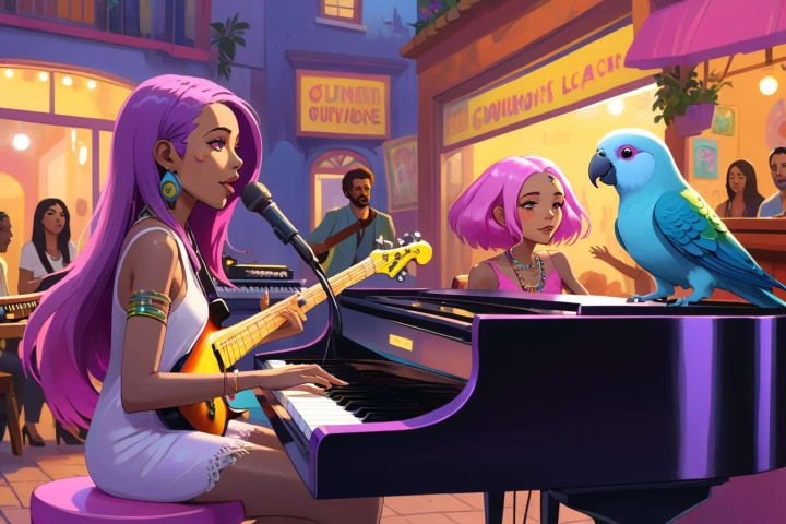 Music by Pink-Haired Robot Guitarist & Sweetie Bird’s Ceremonial Choir