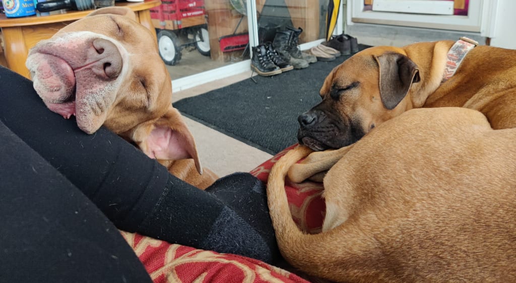 A pair of rescued dogs