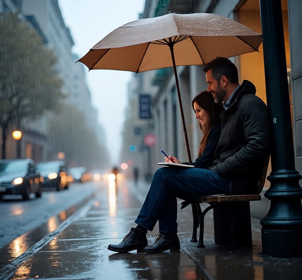 Months passed, and the rain came again. This time I was waiting under the awning. She arrived, and without a word we smiled and stepped into the rain together. No umbrella, no shelter, just the two of us letting the world fall around us. Love is not always grand gestures. Often it is simply choosing each other every day, quietly, persistently, and joyfully.