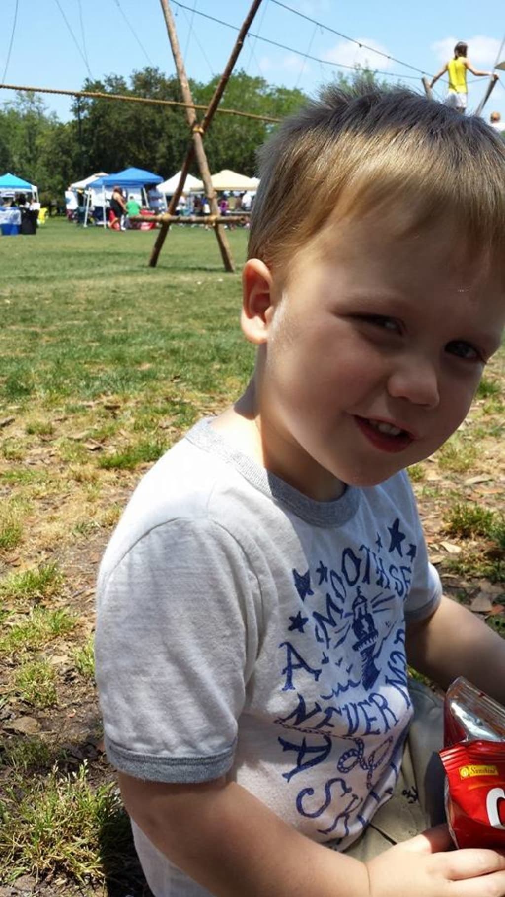 there is a child who walks in sunlight,