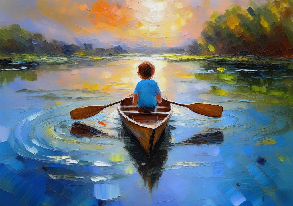 This poem captures the essence of childhood memories, offering a surreal and thoughtful reflection on the enduring lessons learned through rowing a boat.