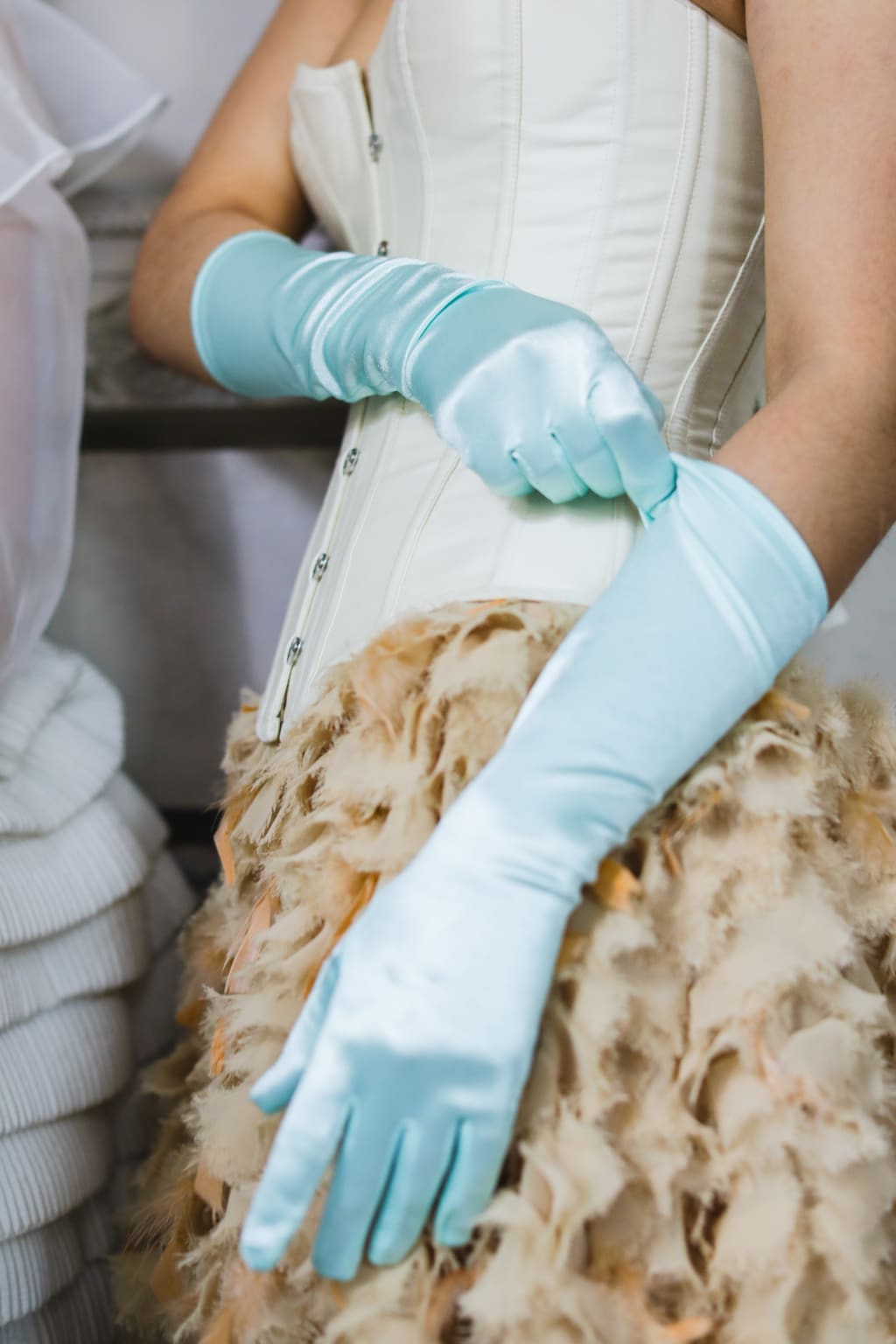 and her gown has real feathers