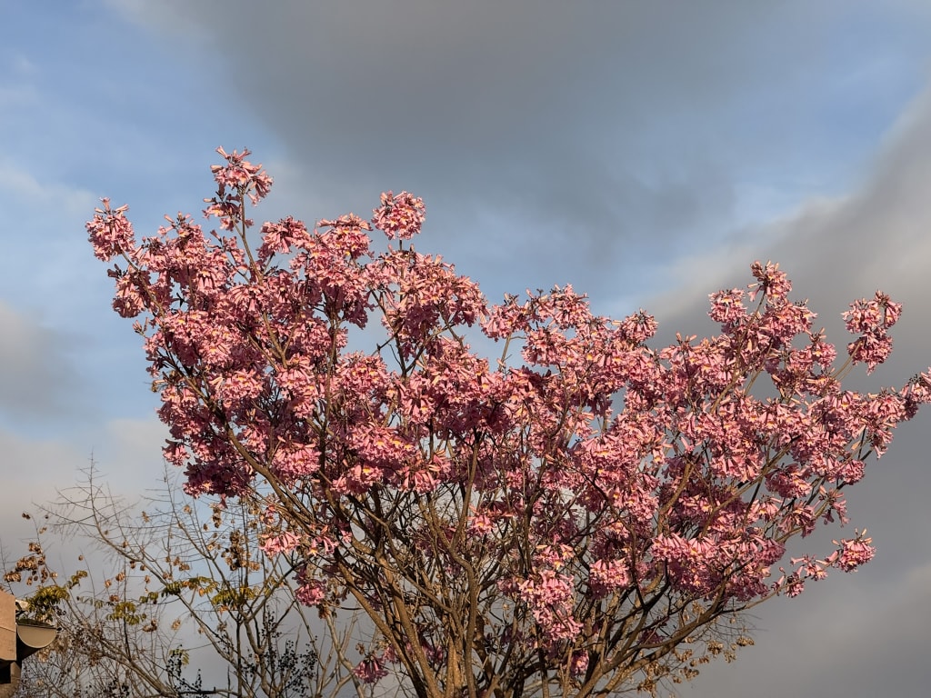 Note: Now the trumpet tree is full of splendor, but it's ephemeral. It's now, that holds all the beauty.