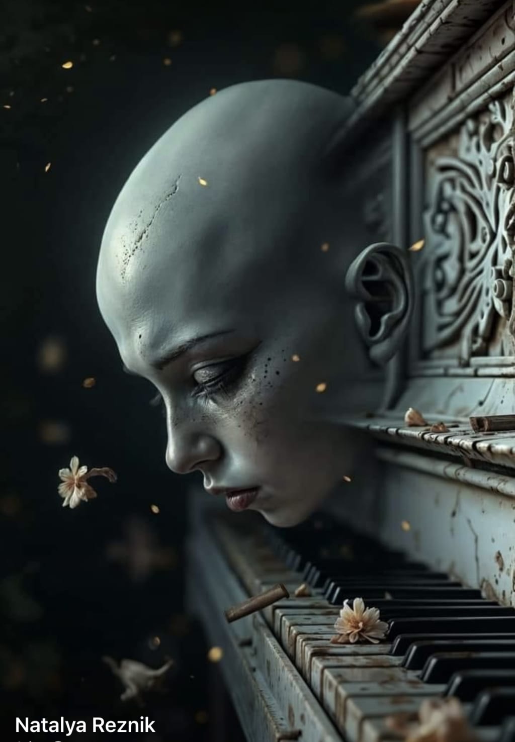 Brokenness falls, petal stained ivory
