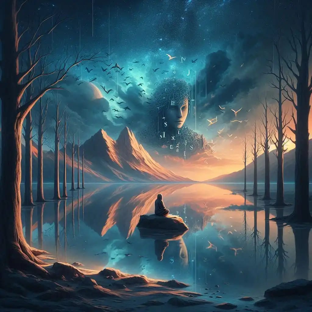 Silent echoes dance in twilight’s veil,