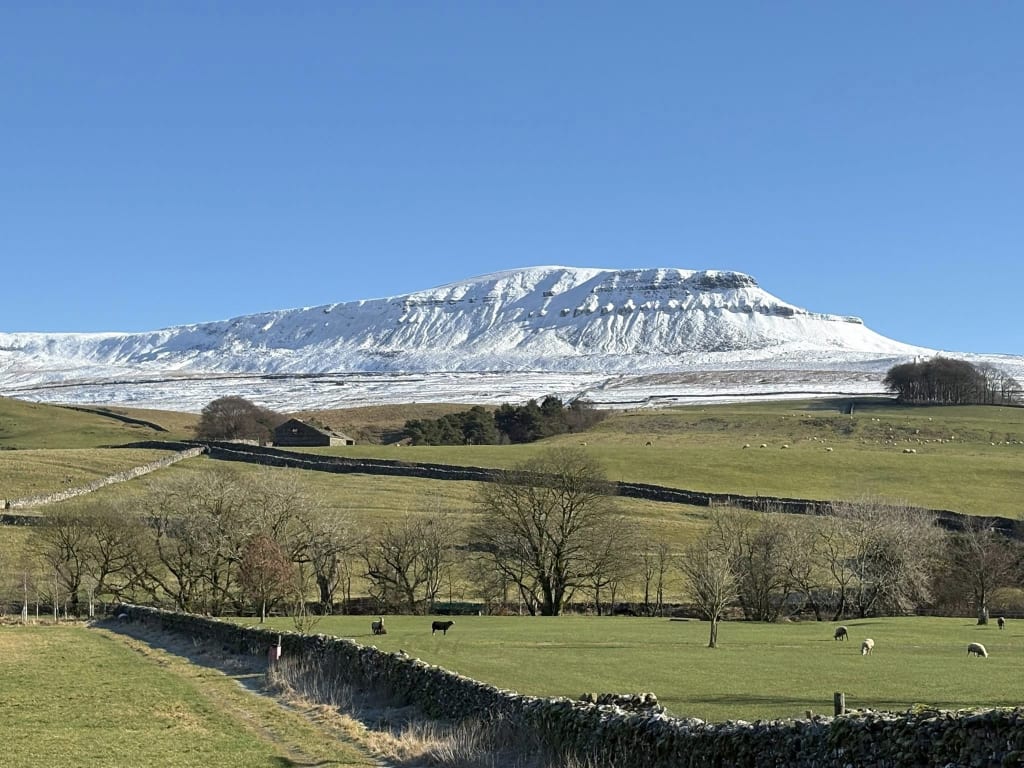 This is where I found it on Facebook, shared by Ribble Dale. I see Pen-y-ghent when I am in Settle, but not usually clad in snow and sunshine.