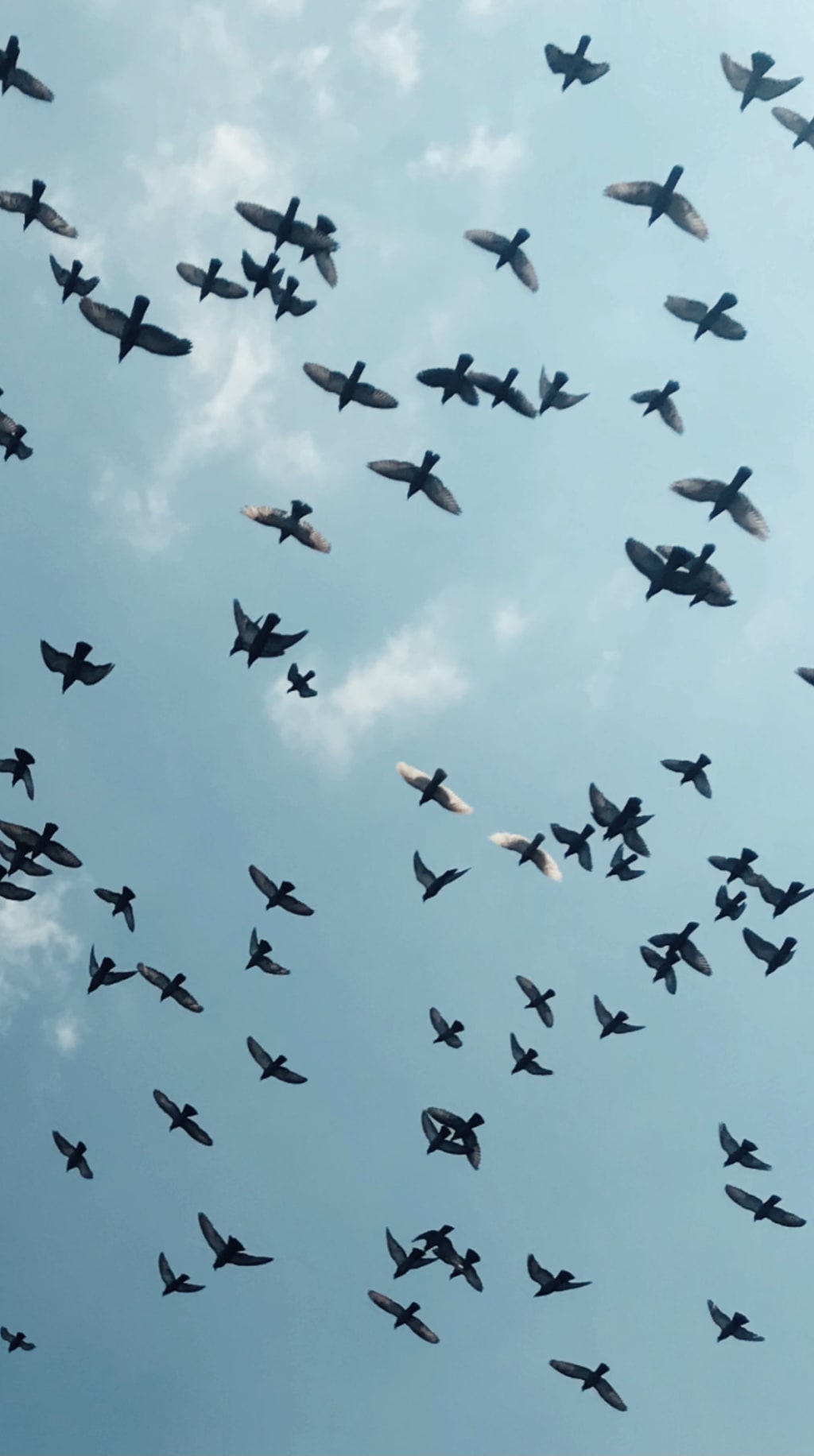 The birds fly free, in an endless spin.