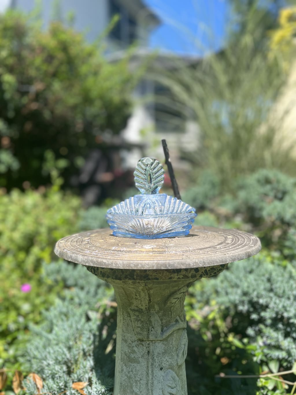 A simple blue glass container