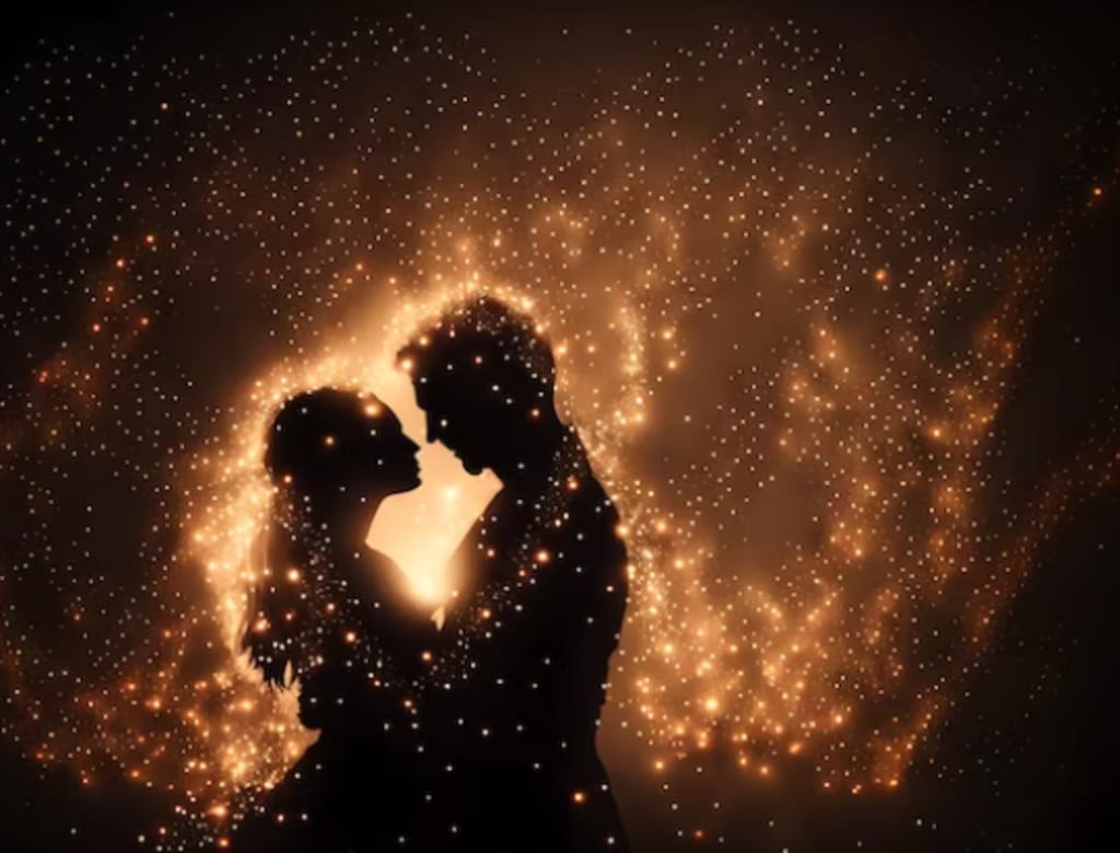 Two souls in harmony, hearts taking flight.