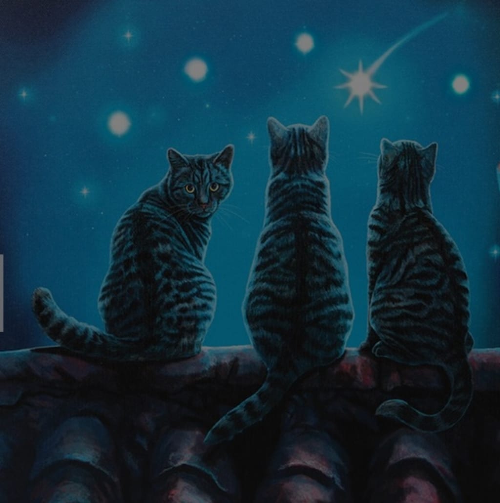 A serene and enchanting poem that captures the quiet magic of cats under a starlit sky.