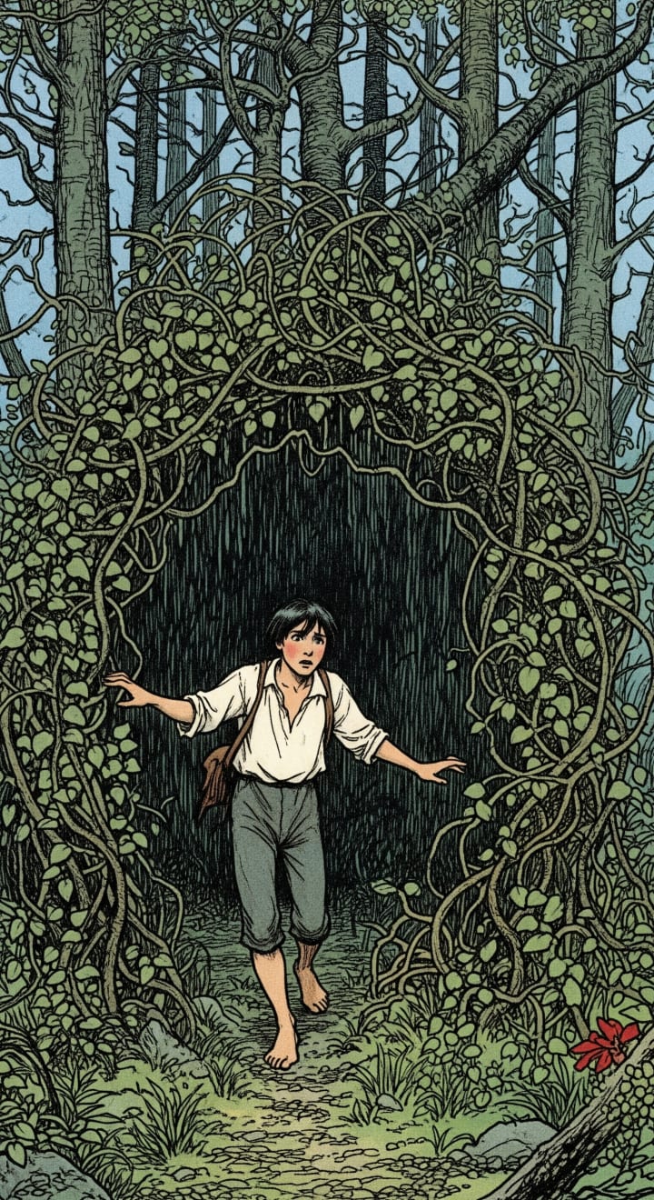 The way out was gone; he’d walked deeper than he thought