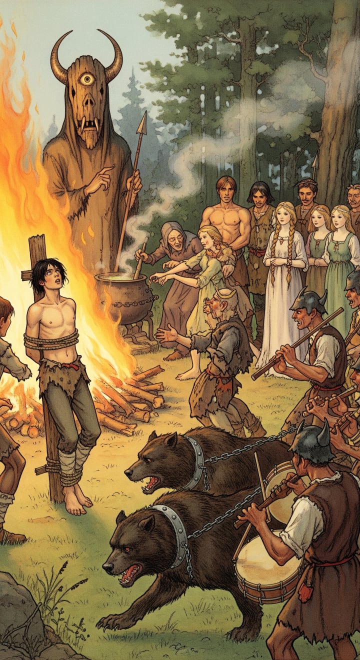 Inside some uniformly hewn clearing, Thomas was tied to a stake