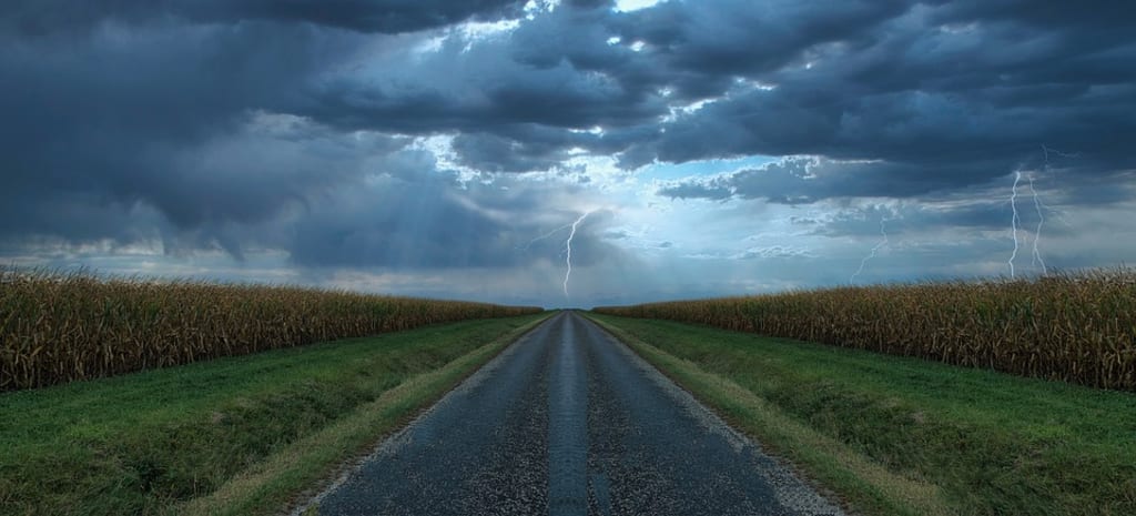 On a dark and dusty road like one of the olds