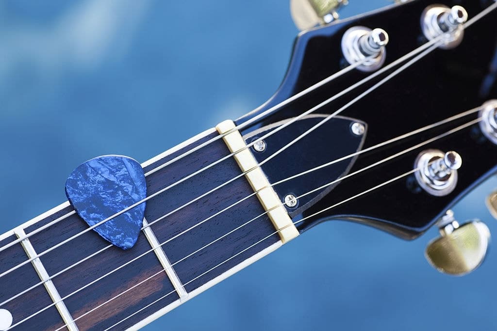 A blue guitar pick. A reminder. A haiku.