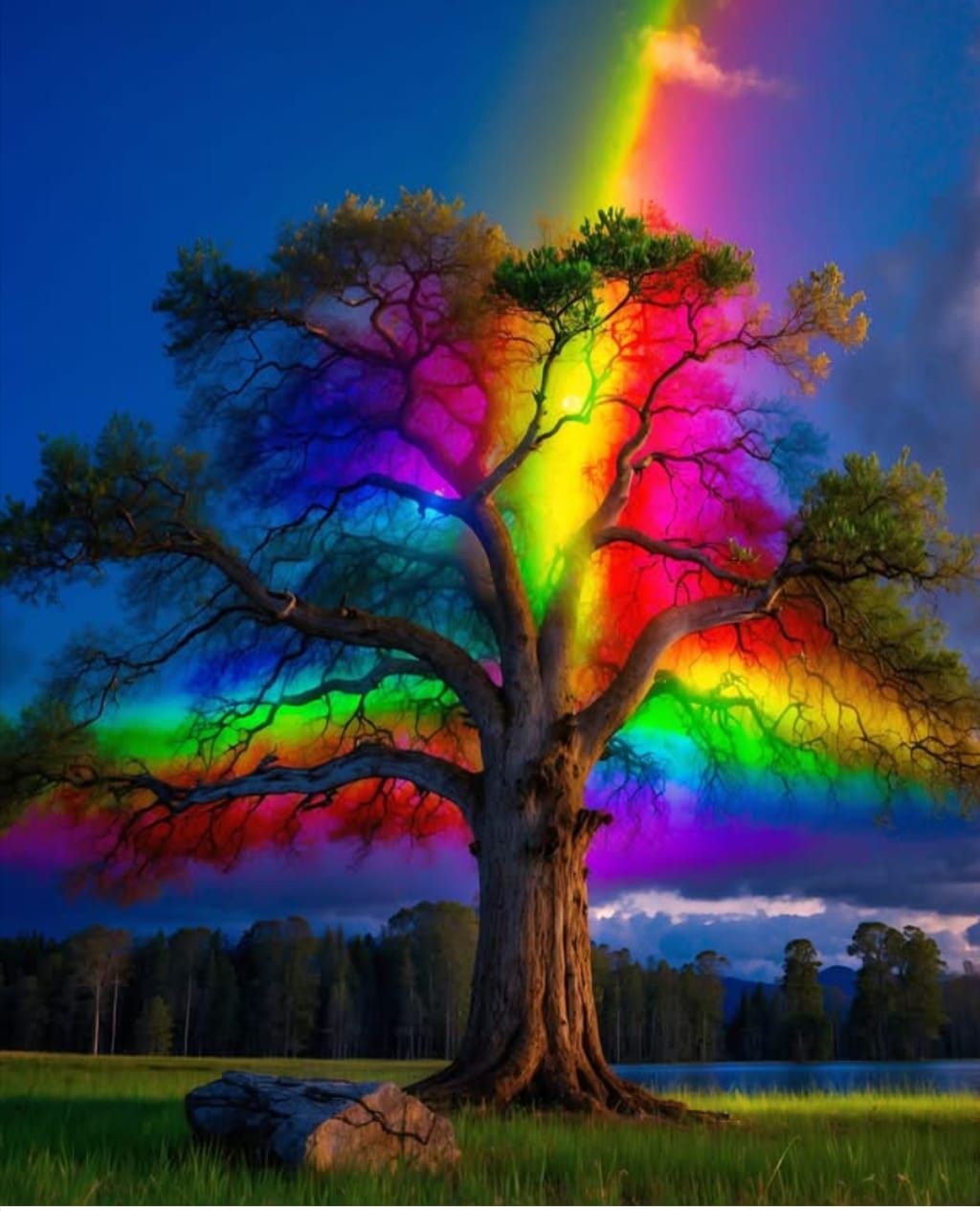 Each branch a stroke of colors bright,