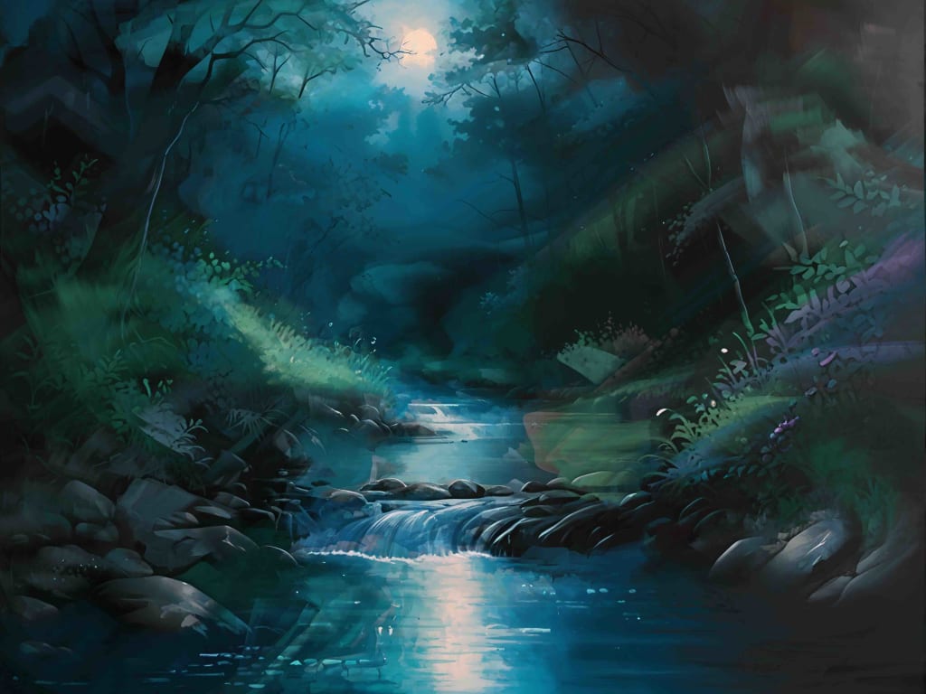 This tanka captures the serene and surreal beauty of a moonlit night by a brook, where the sounds of rippling water create a mystical symphony.
