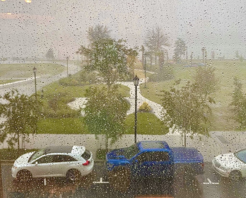 The dark clouds hide the scorching sun quieting the cicadas song