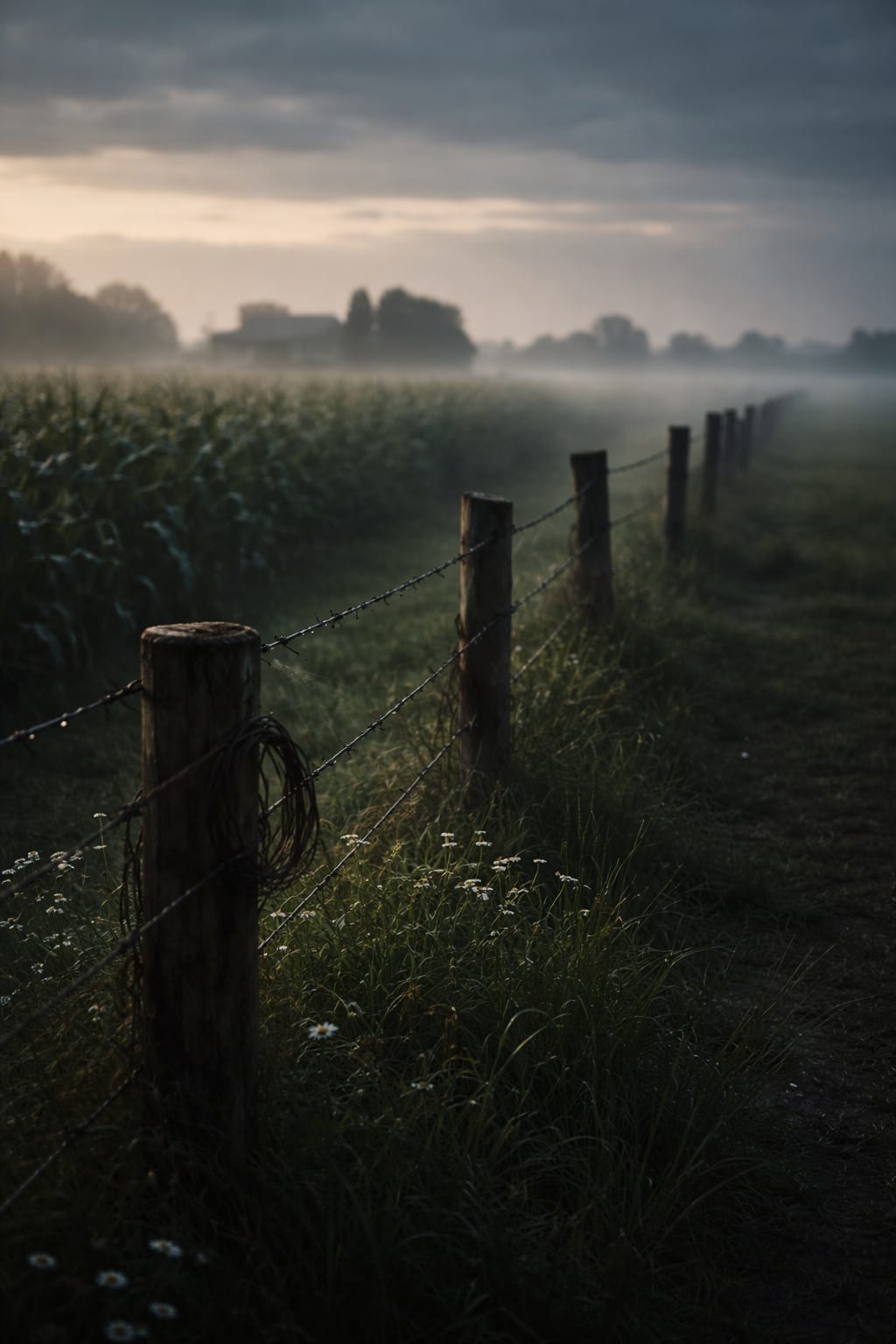 wire pulled tight between breathing fields.