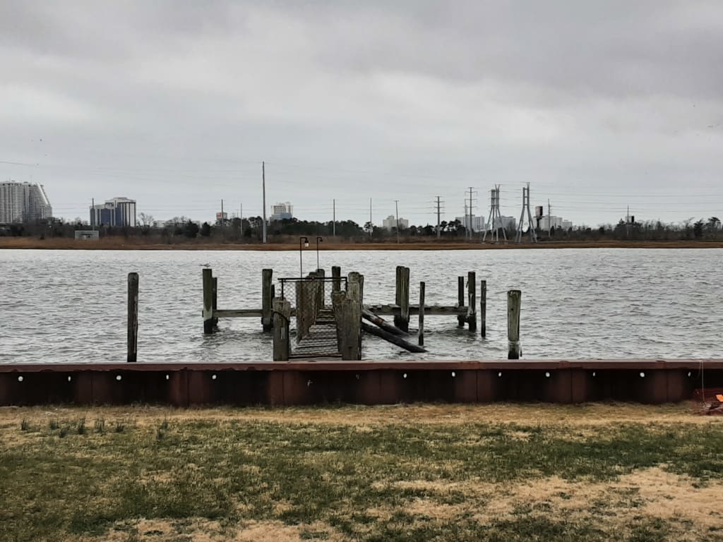 I look out onto the bay side, where the marsh land resides. I see telephone poles, wires, and billboard signs. A maritime forest in the middle of a river, but beyond that is a train that doesn’t quiver. I see a boat pass, wondering how duck hunters won’t shiver. I see a bald eagle, perched on the landing, maybe giving me a sign from above that feelings are passing.