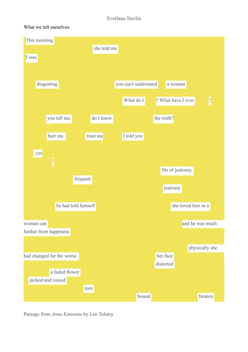A found poem using words from Anna Karenina