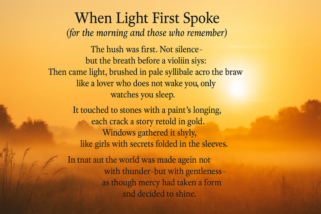 Then came light, brushed in pale syllables across the brow of the earth,