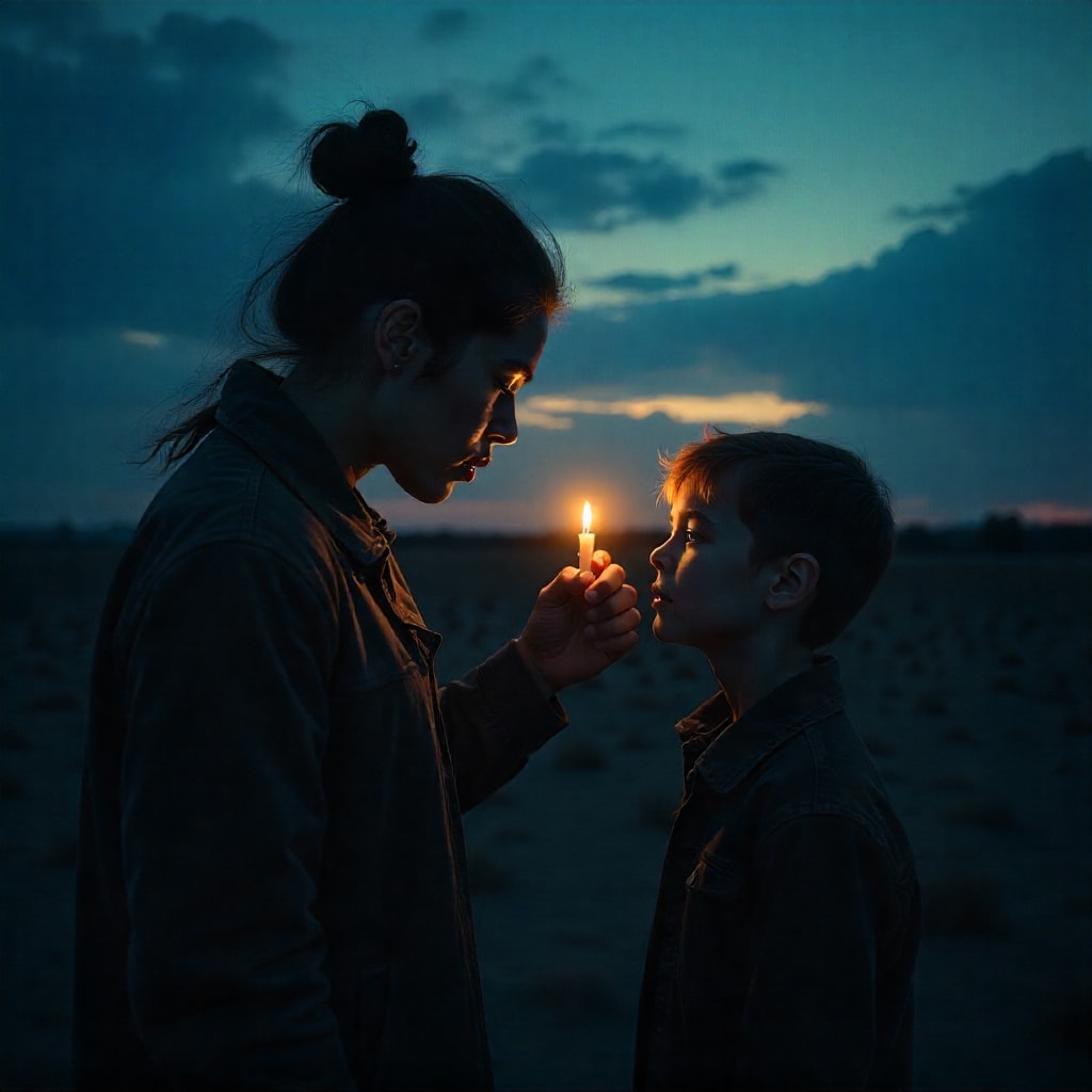 The light in the darkness represents hope and guidance. It symbolizes the idea that even in the bleakest of times, there is always a glimmer of hope, a light that can guide us forward.