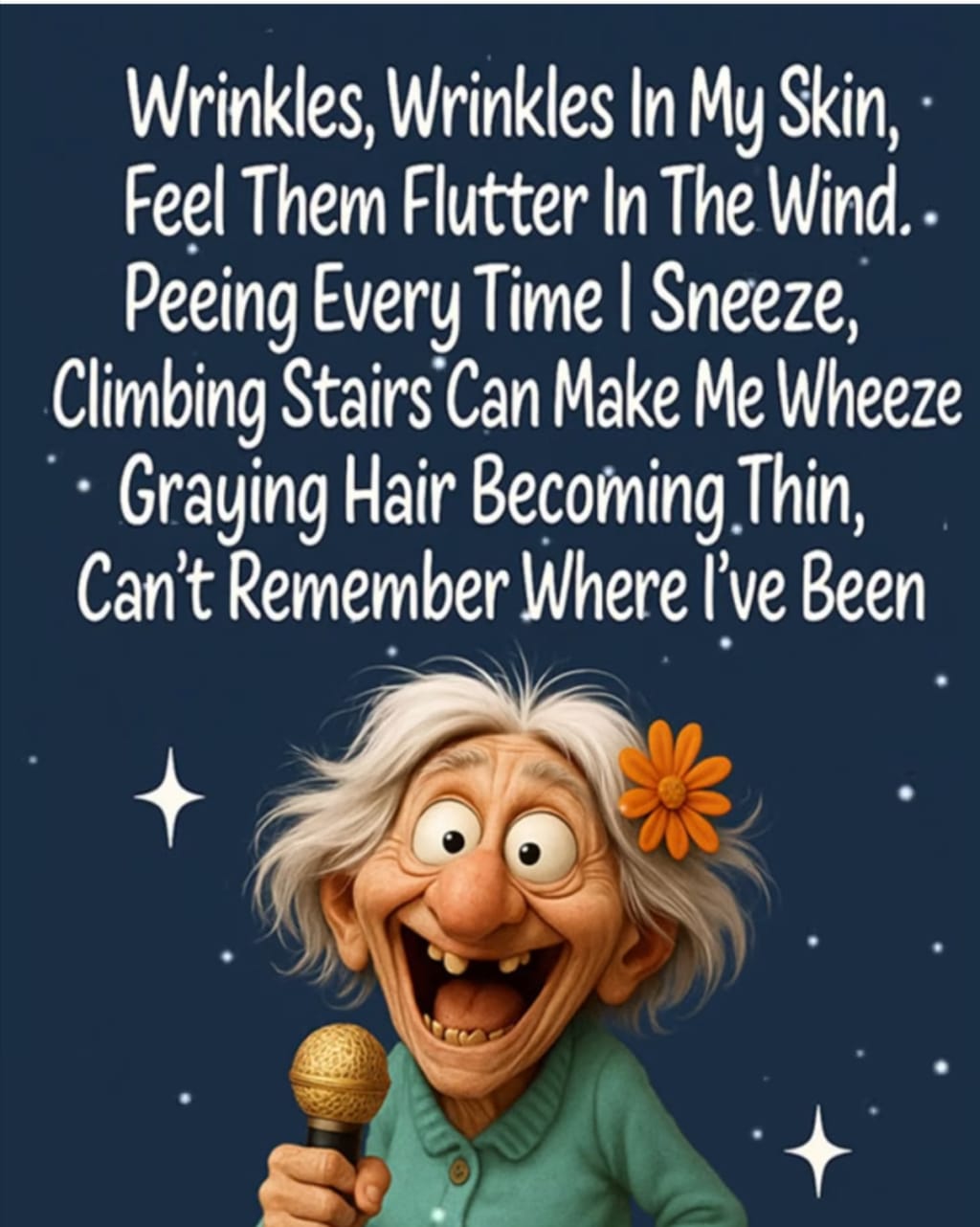 Wrinkles, wrinkles in my skin, they wave when I say hello,