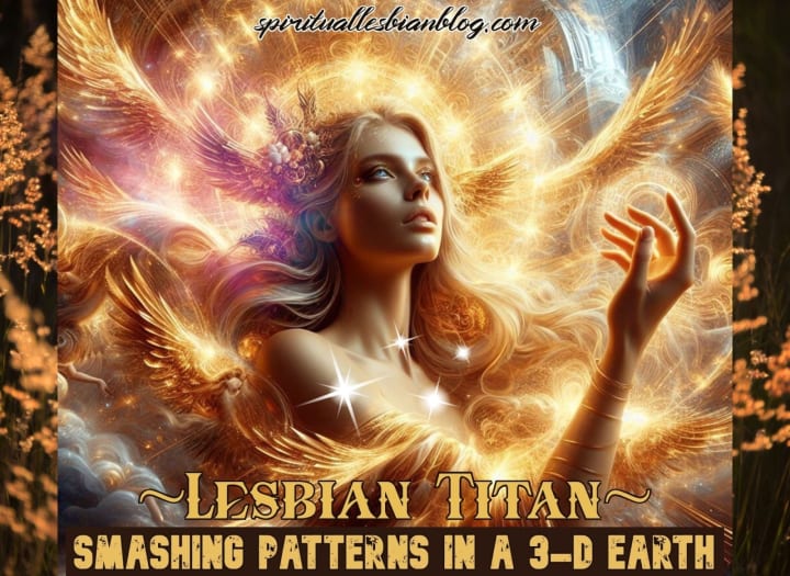And that never comes easy in a sphere shrouded in the dark. Lesbian titans are born of divine love and given free will by a God of benevolence and receptiveness. I am gay and feel the clash of the opposing titans who dishonor words of difference, unity, and approval. Instead, the verse is prejudice, bias, and bigotry. I came to shine a glamorous light on difference no matter the opposing rhetoric spoken by those initiated in the halls of hate. Programs played out for centuries as campaigns of pain and death for those caught in the crossfire. And proof our world operates in the patterns we procure from the keepers of the earthly watch. People in power hold court as the influencers of humankind. At the same time, our feminine messages of submission and surrender echo through our definition of worth alongside the masculine whose conquering ideals cause rifts in the art of togetherness. These defunct programs disallow a relationship born of free-spirited love. A union of high-frequency riveted in the seat of creation with high-end health and maturity. The disrespect of love demands a karmic interplay of co-dependency, control, or abuse. These are simply patterns grown like weeds through our ancestral fields where flowers long to bloom, As our consciousness awakens we see the patterned error of our ways and discontinue the memories so heavily ingrained. We have been living in the shadows of our purist version of self and by the code of guardians who hijacked our innermost thoughts by plugging us into the noise of a mistaken ID with programs we didn't sign up for. Now I am the goddess of a feminine new age. A lesbian titan with intelligence, intuition, nurture, and enterprise. The gift from divinity to a world needing my loving and compassionate stance. A crusader holding space for humanity to grow and transform.