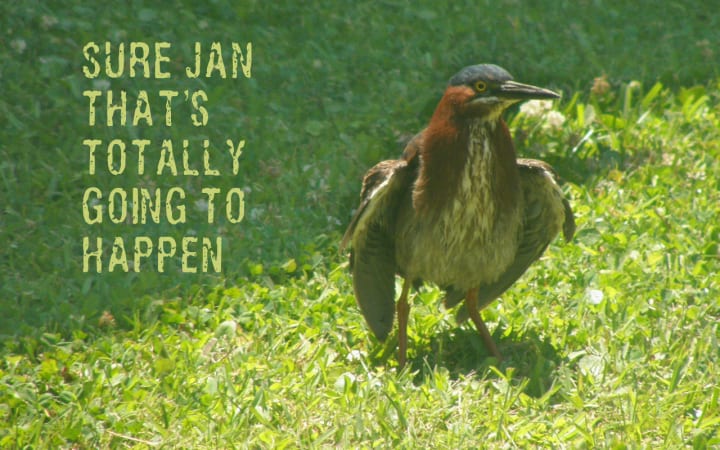 *“Sure, Jan” Green Heron /photo by the author Amethyst Qu.