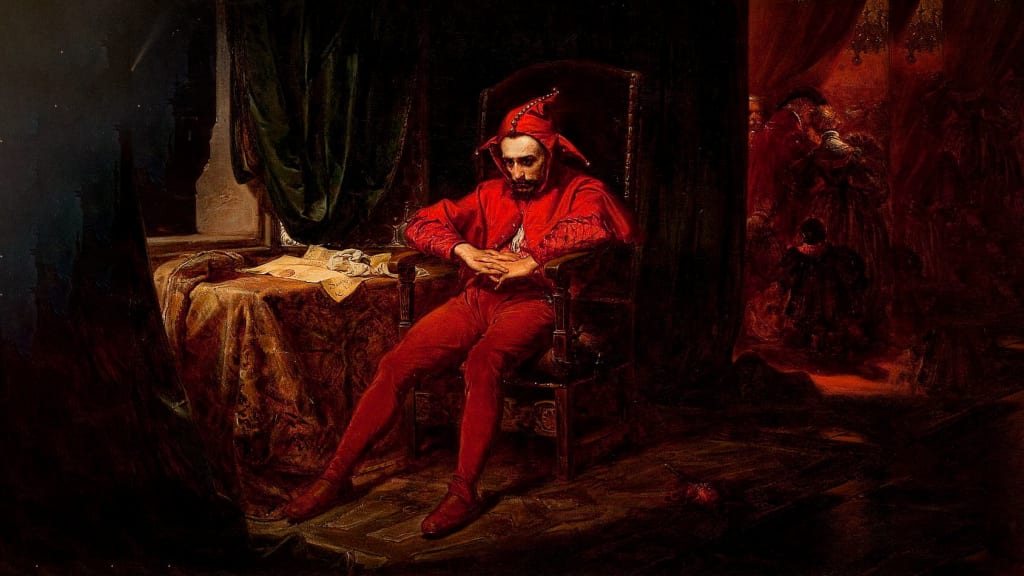 On the corner, the mirror captured the comet's light, and in that moment, his reflection changed. No longer the jester, he was a young guy with his hair messy and skinny frame, holding a paintbrush instead of a scepter. It was Matejko, looking back at him, dark deep eyes like ink. "You see, we are the same," the painter seemed to say. "You bear my despair as well as I bear yours. Seeing the darkness and feeling you must paint it, must laugh about it, is its own burden."In later years, academics dubbed it the Sad Clown Paradox. Stańczyk's spirit was laid bare and uncaring for social conventions under the jester's mask. His lips moving were not in laughter, but in a shared understanding. How many nights had Matejko endured at the easel, channeling his own loneliness into Stańczyk's form? How many times had he asked if painting was just another act, another scream into the unrelenting void?