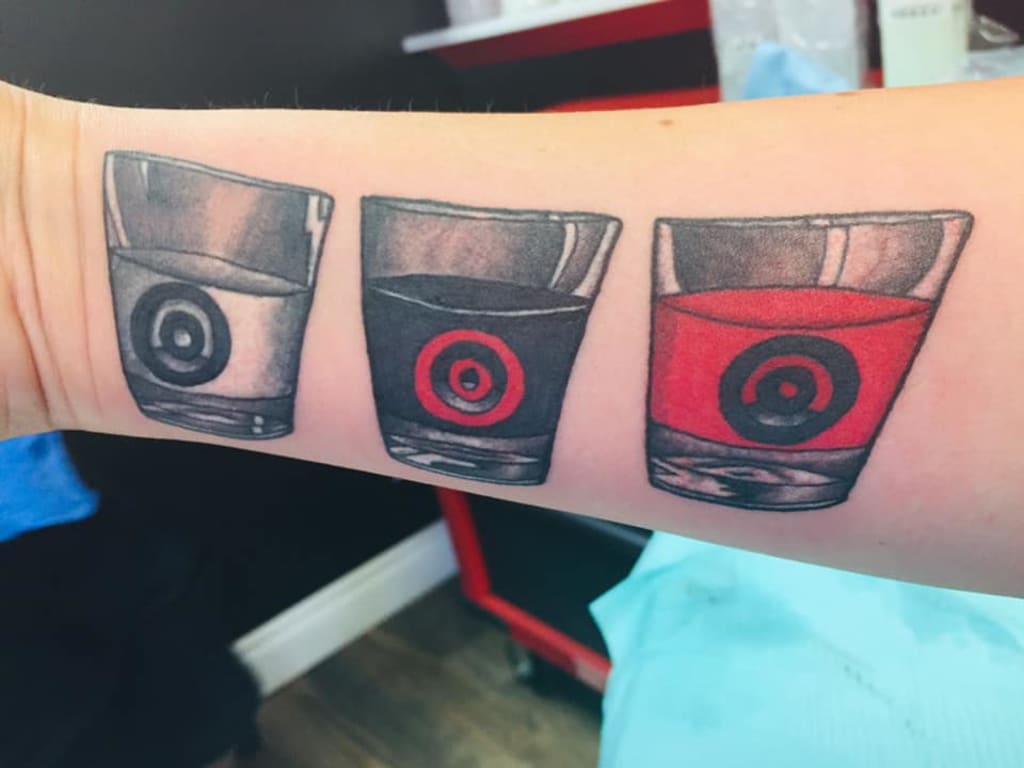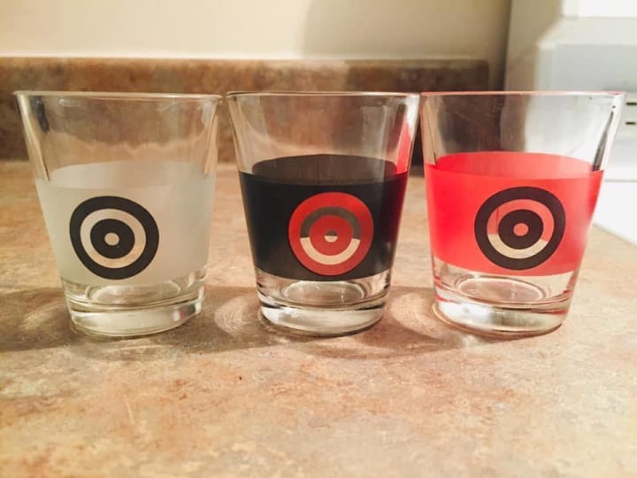 Out of the few material things I had carried with me during my move, one very important item stood apart from the others -a single shot glass. It wasn’t just any shot glass of course and with it came both a story and sentimental comforts. Before I left the place I had called home for about 27 years, I gave each of my bestfriends a unique shot glass of thier own. Each glass was marked with a bullseye to match the roulette I knew we all played to varying degrees within our lives. The colors on each of the markings were shared over these three glasses and intertwined together, tangled like we had become. It was at that time that our tradition started, we each carried with us our glass and no matter where we ended up we would always be able to toast to special moments or when needed, support eachother in times of despair.
